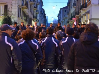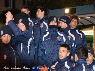 Sotto una leggera pioggerellina i tifosi hanno fatto sentire forte il loro sostegno alla squadra presente in Piazza Sisto.