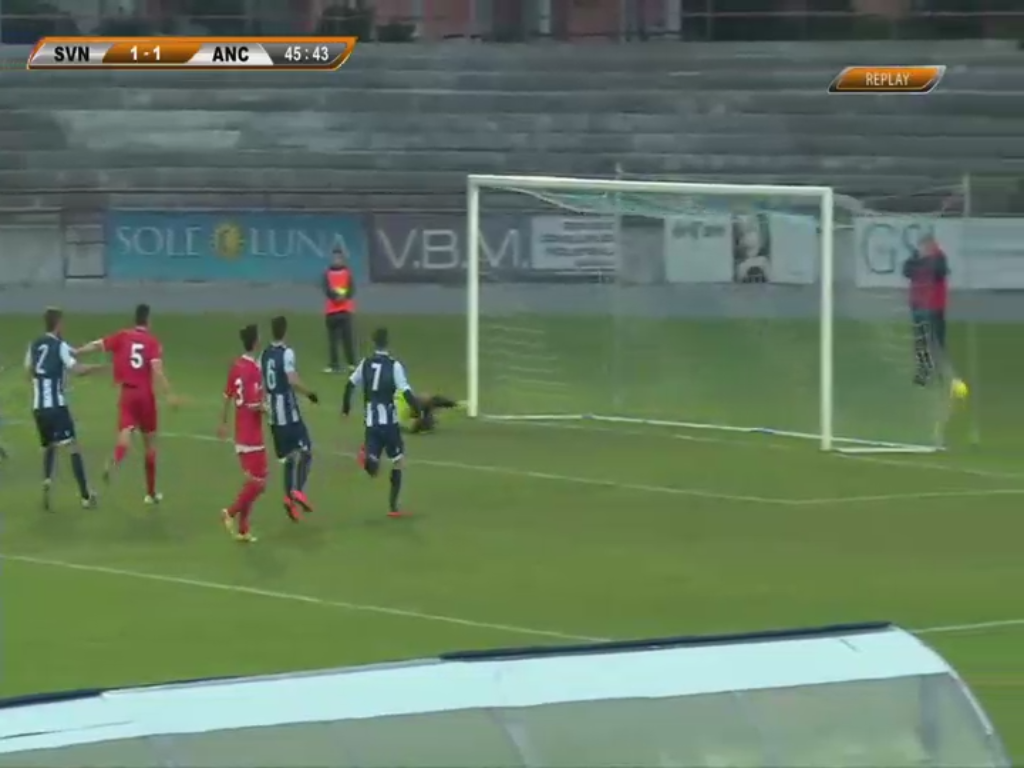 La ripresa segue la falsa riga dei primi 45 minuti; il match è maschio e combattuto a centrocampo, con nessuna delle due squadre che riesce a prevalere sull’altra. Al 58’ Bondi scalda i guanti di Addario con una punizione insidiosa ed al 64’ Tavares sfrutta un buco difensivo dei liguri, ma l’estremo difensore biancoblu è attento. Dopo cinque minuti di pressing marchigiano, il Savona ha la clamorosa occasione per andare in vantaggio: al 67’ De Feo si invola da solo nell’area ospite, ma si fa ipnotizzare da Lori e spreca una chance ghiottissima. Goal sbagliato, goal subito: Tavares si invola sulla fascia destra e mette in mezzo per Paponi, che non sbaglia da distanza ravvicinata. La reazione dei biancoblu è rabbiosa, ma confusa: all’83’ Antonelli ci prova di testa, ma debolmente ed un minuto dopo Colombi, su progressione di Giorgione, non arriva di un soffio su un pallone vincente da spingere solo in rete. Ormai non c’è più tempo e l’arbitro decreta la fine della partita.