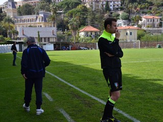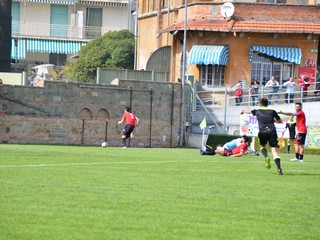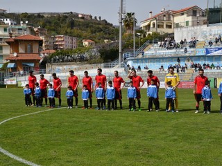 37' La squadra ospite prova a reagire, l'Unione Sanremo chiude bene gli spazi nella propria metà campo.