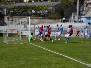 4' Risposta immediata del Fabriano che, anch'esso da corner, con un colpo di testa spedisce il pallone alto non di molto rispetto alla porta difesa da Miraglia.