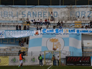 28' Si agita la cinquantina di sostenitori della squadra ospite, il gol di Capra obbliga i marchigiani alla risposta immediata!