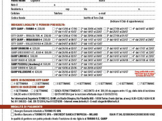Per ulteriori informazioni rivolgersi alla segreteria del TORINO F.C. CAMP tel. 011 365332 cell. 335 7212016 -dal lunedì al venerdì orario 9.30 – 12.30 = 14.30 – 18.30 oppure consultando il sito internet http://www.torinofc.itwww.torinofc.it – E-mail: stagestivi@torinofc.itstagestivi@torinofc.it