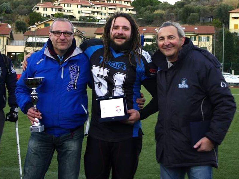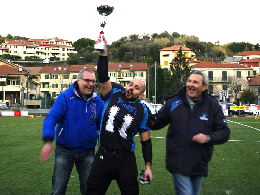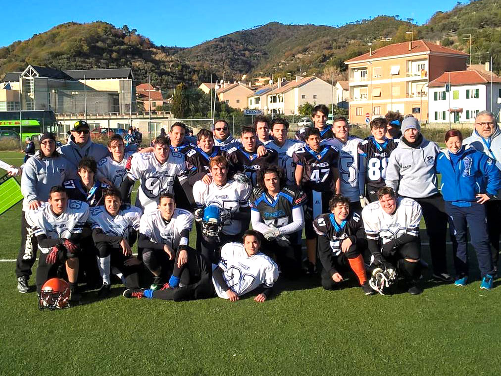Mostrano subito i muscoli i Pirates nel primo torneo che inaugura la stagione sportiva del sodalizio ligure. Giunto oramai alla decima edizione, il Xmas Bowl è diventato un appuntamento fisso per i Pirates 1984. La formula del torneo è collaudata ed ogni anno sono sempre piu numerose le squadre che chiedono di essere invitate. Quest’anno a sfidare i Pirates sono venuti i Mastiffs Canavese, sodalizio piemontese che militerà nel 2018 nel campionato di II divisione Fidaf, una categoria superiore rispetto a quella dei pirati liguri. Forti dell’accordo sportivo con l’altro team del canavese, i Blitz San Carlo, che ha rinforzato ed aumentato il numero dei giocatori, le due squadre hanno quindi deciso di fare il salto di categoria. Auguriamo al team piemontese di raccogliere dei successi sportivi che meritano per l’impegno e la serietà di entrambe le società.