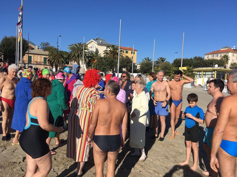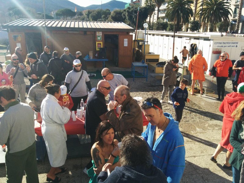 Intorno alle 11.00 i temerari, la maggior parte del gruppo dei "Nuotatori del tempo avverso", si sono presentati ai nastri di partenza, pronti per il tuffo in mare. Ad assistere all'iniziativa gli assistenti bagnanti ed un mezzo della C.R.I. di Vado Ligure.