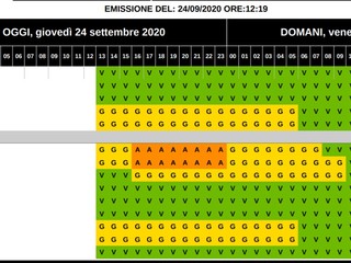 bacini piccoli: gialla fino alle 16 poi arancione fino a mezzanotte quindi gialla fino alle 8 di domani venerdì 25 settembre;