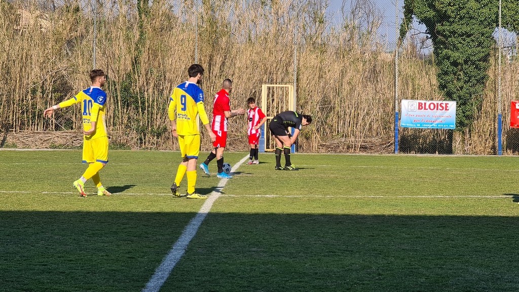 39' Ceriale a una manciata di centimetri dal pareggio. Badoino salta indisturbato, il colpo di testa scivola lento e beffardo oltre la linea di fondo