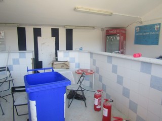Intonaco da sistemare sia internamente che esternamente sulle tribune, spogliatoi da sistemare, soffitti sfondati, infiltrazioni con distacchi di pezzi di calcestruzzo, recinzioni divelte e erba alta.