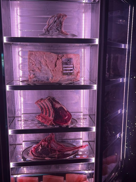 Le fa subito eco Luca, che aggiunge: “Per i nostri ospiti scegliamo solo carni di altissima qualità, prevalentemente italiana, come la Fassona piemontese, con tagli diversi che lavoriamo direttamente nel nostro maturatore apposito per la frollatura”.