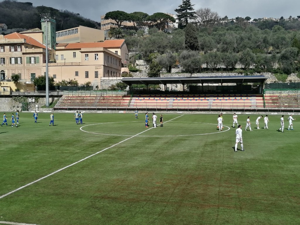 4' occasionissima non sfruttata dal Finale con il tentativo di Risso a metà tra il tiro e il cross che attraversa lo specchio della porta di Rizzo senza nessuna deviazione vincente.