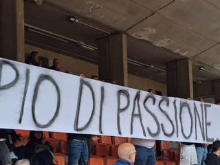 79' altro striscione da parte dei tifosi del Savona, dedicato questa volta a Xhuri: "Gledi non mollare"