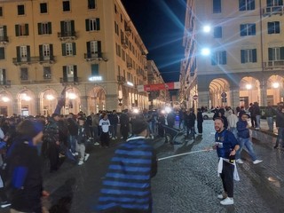 Al triplice fischi i tifosi interisti savonesi si sono catapultati per le vie di Savona raggiungendo la classica "sede" del tifo del comune capoluogo Piazza Mameli.