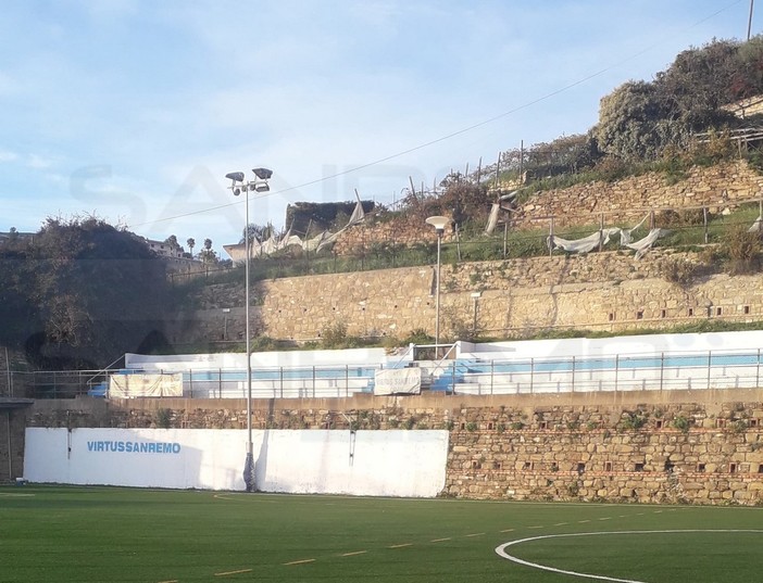 Il forte vento ha distrutto la tensostruttura adibita a palestra della Virtus Sanremo Calcio, installata poco sopra il campetto ‘Grammatica’ a ridosso del ‘Comunale’ della città dei fiori.
