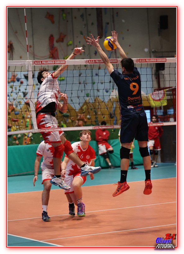 Nella terza giornata del girone a 8 squadre dei play off di serie D, la giovane formazione dell'Anselmo Carcare ha ottenuto un'importante vittoria contro la squadra chiavarese del Villaggio Volley che in virtù dei punti acquisiti in campionato e delle due vittorie nei play off guida la classifica. Un folto pubblico ha seguito con molto calore e correttezza l'incontro, che ha visto i gasatissimi ragazzi di casa spingere sull'acceleratore e mettere in difficoltà gli ospiti, che però non riescono a contenere l'esuberanza dei locali che chiudono 25 a 19. Nel secondo set, l'esperta formazione ospite cambia atteggiamento e parte con un terrificante 6 a 1. Durante sprona i suoi ragazzi che in trance agonistico danno il meglio riuscendo ad agganciare e superare i frastornati chiavaresi che si vedono sfuggire il set sul 25 a 23. La partita sembra messa sui giusti binari, ma i navigati ospiti mettono sulla bilancia tutta la loro esperienza e freddezza e con due set perfetti mettono la partita in parità, 25 a 17 e 25 a 18. Sarà il quinto e decisivo set a decretare la vittoria dei biancorossi, che sfoderano tutta la determinazione e grinta dimostrata in questo torneo partendo con un 5 a 1, che gli ospiti non sono più riusciti a recuperare, nonostante le ottime giocate di entrambe le formazioni si è andato avanti di continui cambio palla fino al 15 a 10 finale che ha sancito la prima vittoria dei ragazzi di casa in questi play off, che li vedono comunque a due punti dalla vetta e una partita da recuperare, quindi in corsa per una possibile promozione.