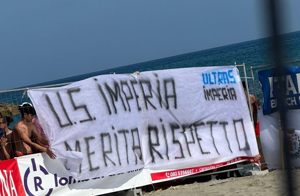 La sabbia rovente della Marina di Porto Maurizio non ha fatto in tempo a scaldarsi per il calcio d’inizio del Domina Beach Soccer Tour, che a irrompere nella manifestazione internazionale è arrivato un fuori programma. Poco prima dell’inizio delle semifinali, un gruppo di ultras dell’Imperia Calcio ha esposto uno striscione polemico rivolto alla dirigenza nerazzurra, attirando l’attenzione — e il disappunto — dei rappresentanti di DAZN, media partner del torneo, che hanno minacciato la sospensione dell’evento.