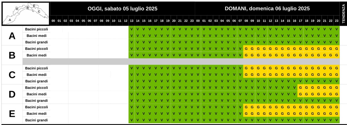 L'allerta sarà presente anche nel genovese, nello spezzino e nell'entroterra.