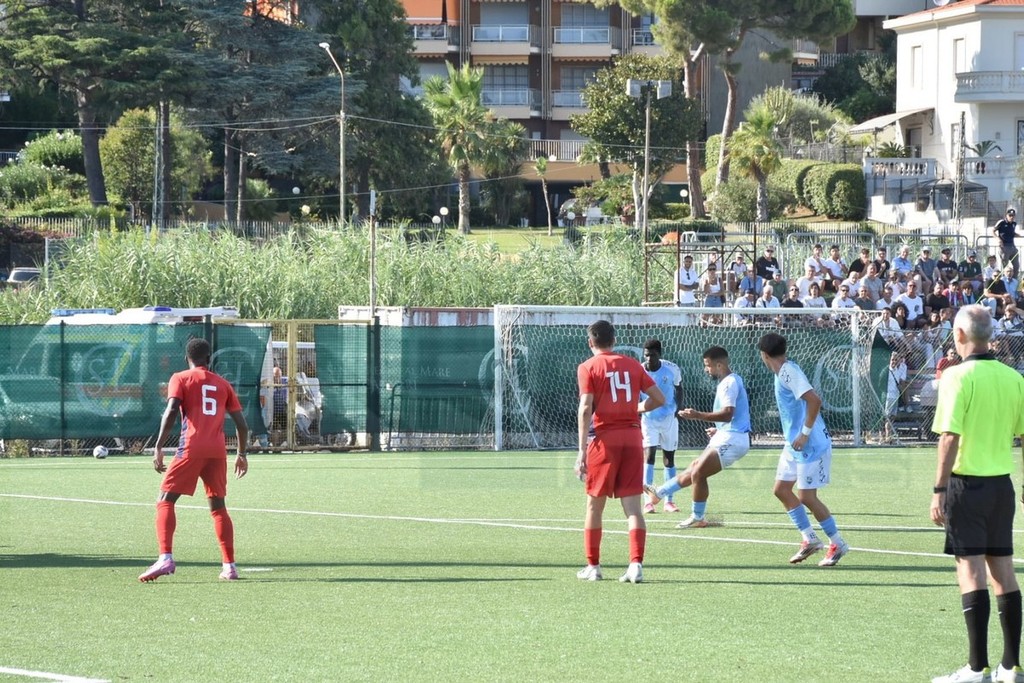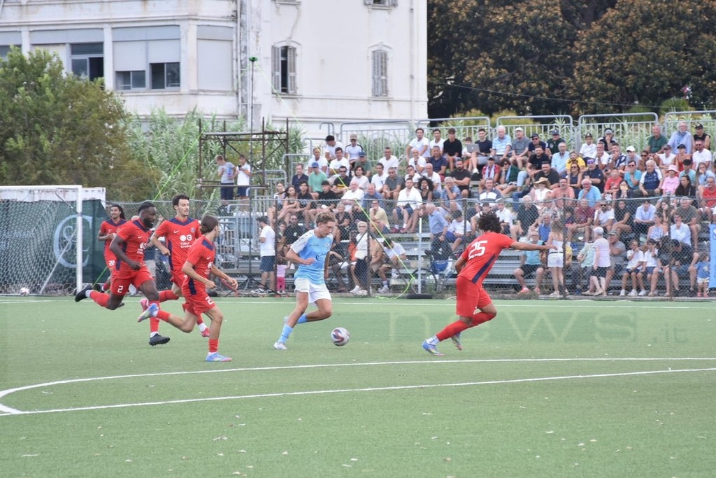Primo tempo senza grandi emozioni con il caldo a farla da padrone nonostante la classica brezza di mare dia una mano ai giocatori in campo. Squadre che pensano soprattutto a perfezionare gli schemi preparati nei primi giorni di ritiro. Nella ripresa classica girandola di sostituzioni con mister Davide Moro che cambia tutti gli undici seguito dal collega francese.
