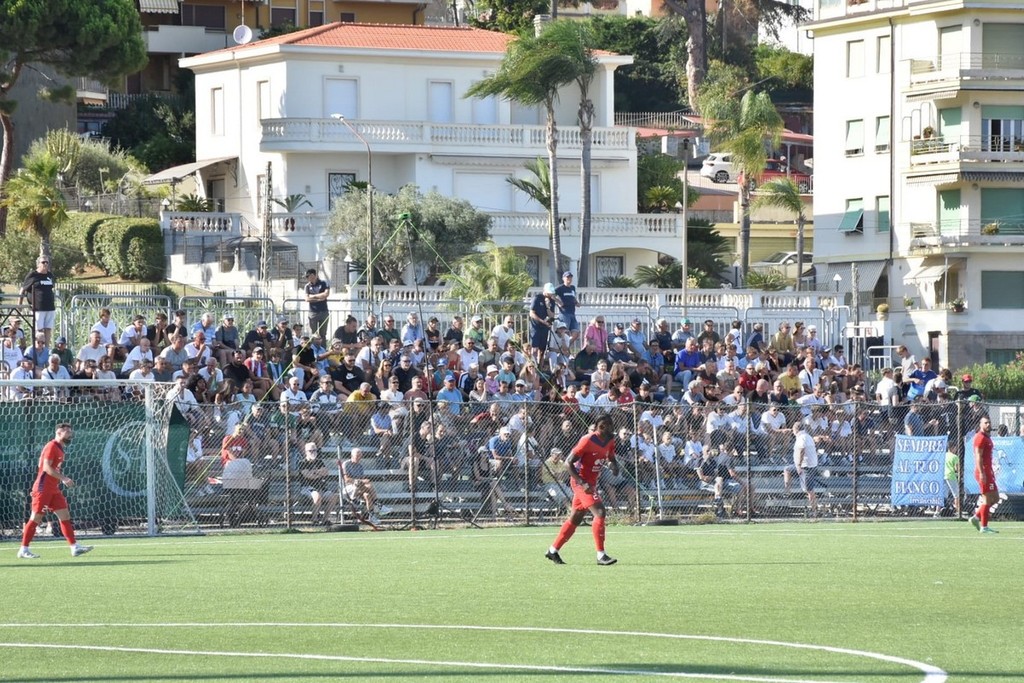 Campo di Pian di Poma semi blindato, oggi pomeriggio a Sanremo per la prima amichevole della Sanremese contro i francesi del Grasse, squadra che milita nel campionato di Serie C francese.