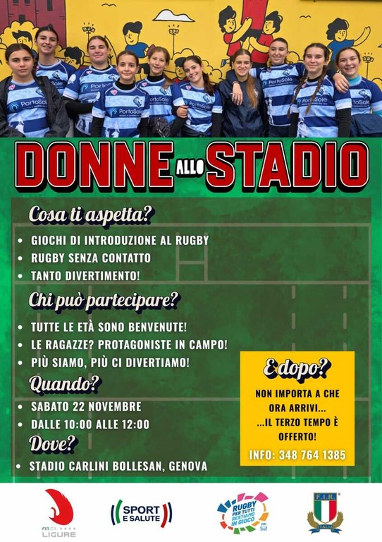 Si tratta infatti di due ore di "open day" aperte a ragazze e bambine di tutte le età: si faranno giochi propedeutici al rugby e si giocherà senza contatto, perchè tutte si possano divertire in sicurezza e avere così un primo approccio alla palla ovale. A seguire, come nella migliore tradizione, un bel terzo tempo per tutte.