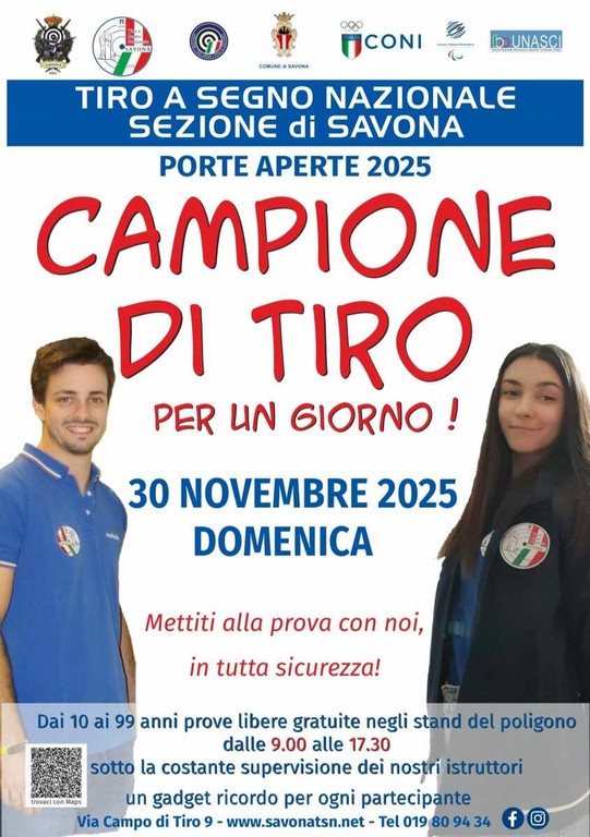 Domenica 30 novembre 2025 il Tiro a Segno Nazionale Sezione di Savona apre nuovamente le porte al pubblico per una giornata all'insegna dello sport, della sicurezza e della scoperta di una disciplina che unisce controllo mentale e precisione fisica.