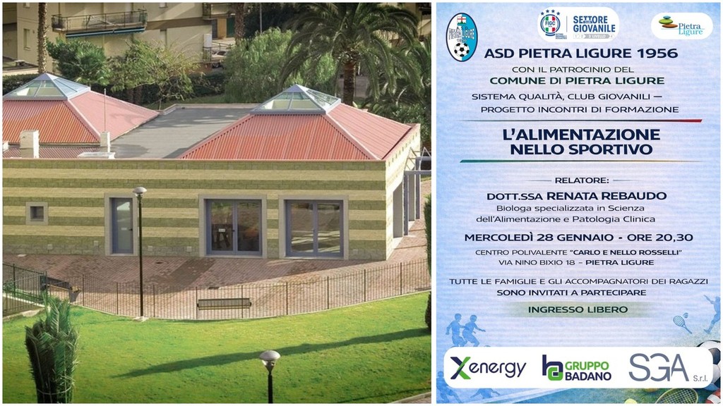 Pietra Ligure si prepara ad ospitare un importante appuntamento dedicato alla crescita e al benessere dei giovani sportivi. Mercoledì 28 gennaio, alle ore 20.30, presso il Centro Polivalente “Carlo e Nello Rosselli” di via Nino Bixio 18, si terrà l’incontro formativo dal titolo “L’alimentazione nello sportivo”, promosso dall’ASD Pietra Ligure 1956.