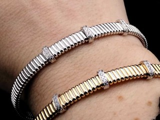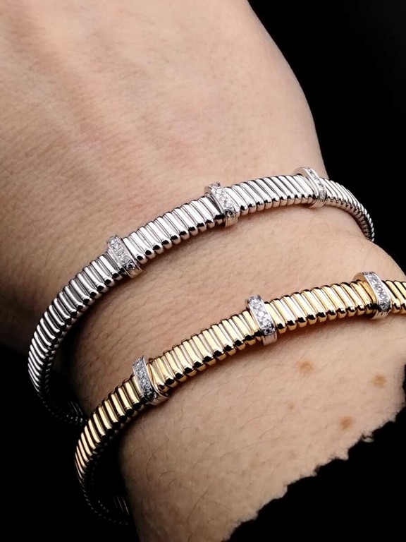 Tante le proposte di gioielli artigianali. Tra le novità in casa Gocce Oro, torna protagonista il Tubogas, simbolo intramontabile della gioielleria: linee morbide e avvolgenti che prendono forma in bracciali, collane, anelli e orecchini in oro bianco, giallo o rosa, impreziositi da diamanti. Un grande classico che continua a conquistare per la sua raffinatezza senza tempo.