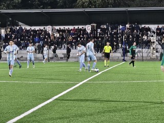38' Macagno prova ad alzare i giri, il numero 10 dell'Albissole cerca l'incrocio da posizione decentrata, l'incrocio viene sfiorato per centimetri